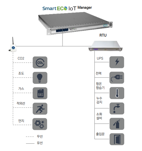 사물인터넷(IoT)을 기반으로 다양한 센서 및 무선 인터넷으로 관리용 데이터를 수집하는 융합관리솔루션입니다.